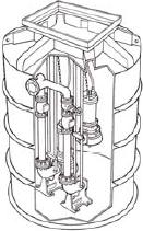 Variable sump depths (recommend a further meter below invert pipe), inlet and discharge connections are freely selectable with two free standing or pedestal mounted submersible pumps.